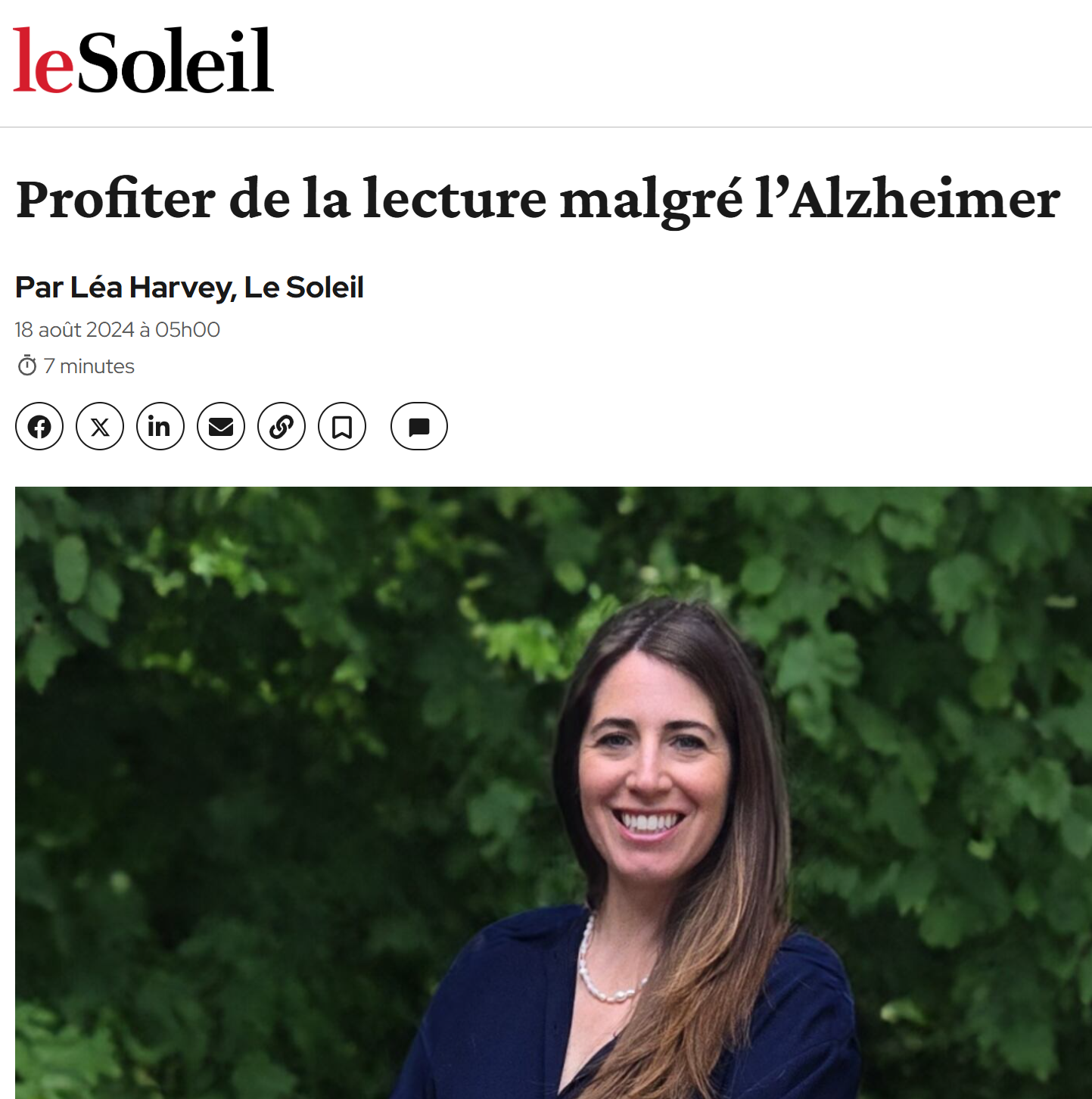 “Comme proche-aidante, je ne trouvais pas des produits appropriés et avec le bon niveau de difficulté pour ma mère afin qu’elle maintienne ses habilités et son autonomie. C’est pourquoi, avec l’aide de professionnels de la santé, j’ai créé des livres d’activités, des jeux et des livres de lectures. Je crois, du fond de mon cœur, que les personnes affectées par un trouble neurocognitif méritent de vivre dans un environnement positif et qu’ils continuent de participer à des activités sociales le plus longtemps possible.”